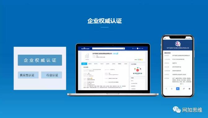 通过网加思维入驻爱采购的高级会员可以享受数据推送到百度爱采购平台的机会,并可在百度搜索结果页拥有专属企业名片,企业信息和优质商品同步展现;并且获得百度信誉认证,强化品牌认知,凸显企业实力, 增强客户信任度。实现PC 端、移动端、百度APP 多端展现,在为客户做品牌宣传的同时,强化产品曝光,提高成单机会。