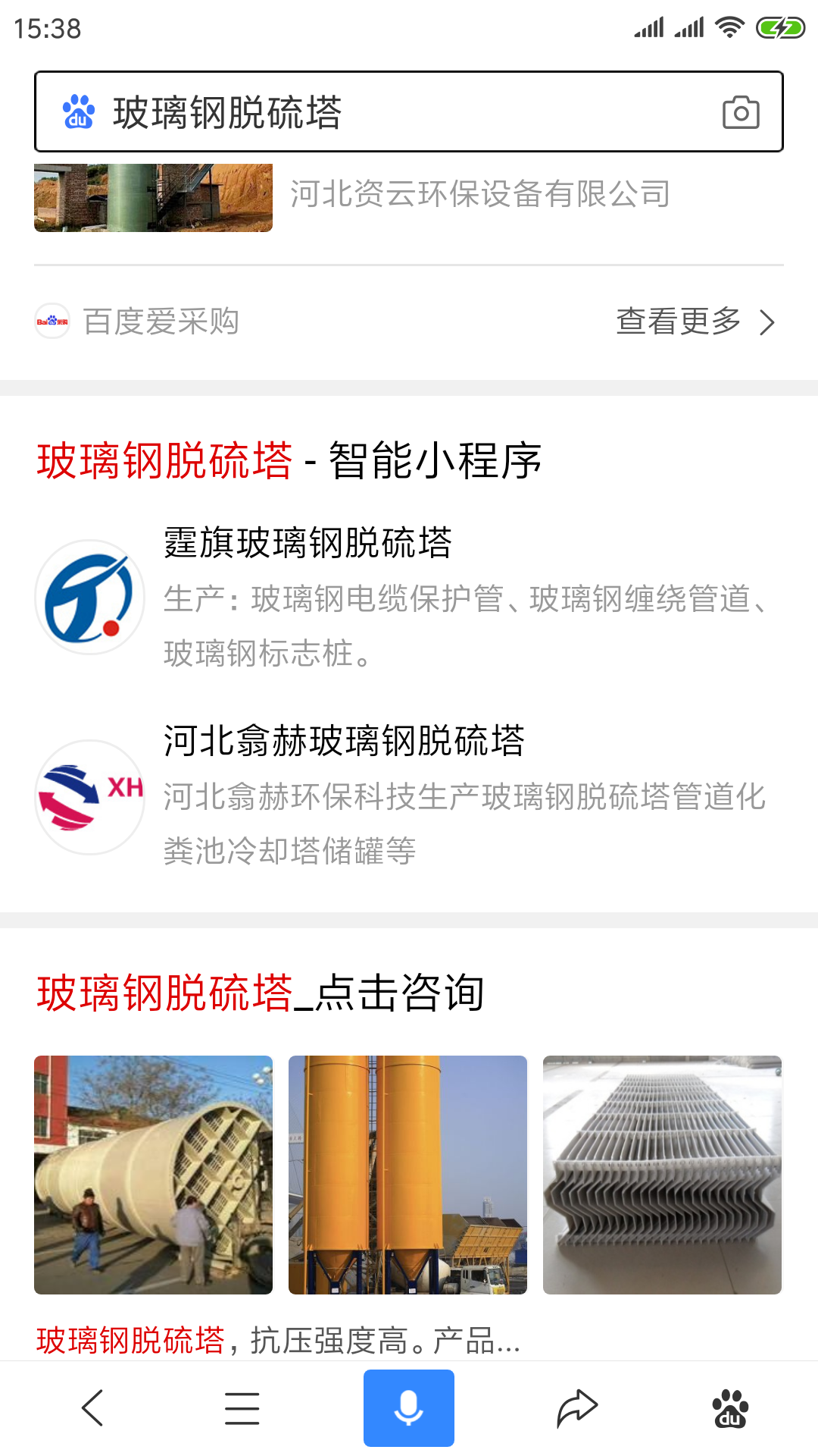 百度小程序:河北翕赫玻璃钢脱硫塔